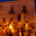 Dopo la Santa Messa delle 18:30 officiata dal parroco Don Luca, unitamente ai numerosi fedeli presenti abbiamo partecipato alla processione al seguito del simulacro della Madonna, portato a spalla da un gruppo di giovani volenterosi muratori poggioimperialesi, fra preghiere, canti sacri e l’accompagnamento musicale della Banda Musicale di San Paolo Civitate.